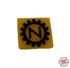 Štítek vyměnitelný žlutý se symbolem motorové brzdy.